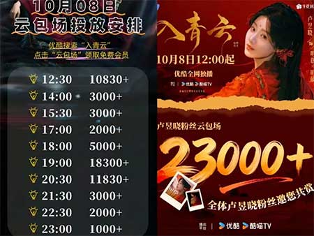 优酷云包场《入青云》 ⏰12点开播 全天预计10W+份 数量很多哈!