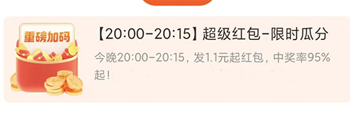 20点-20点10分,有限时不限量加码,必中的