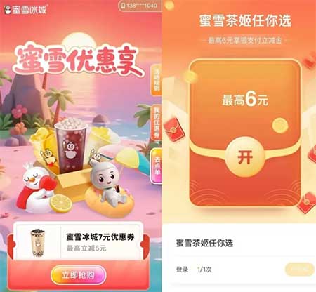如抽中6亓券 可1买7亓 蜜雪冰城券