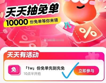 美团app-外卖频道-天天津贴今天10点30起,有免单1w份活动,先到先免