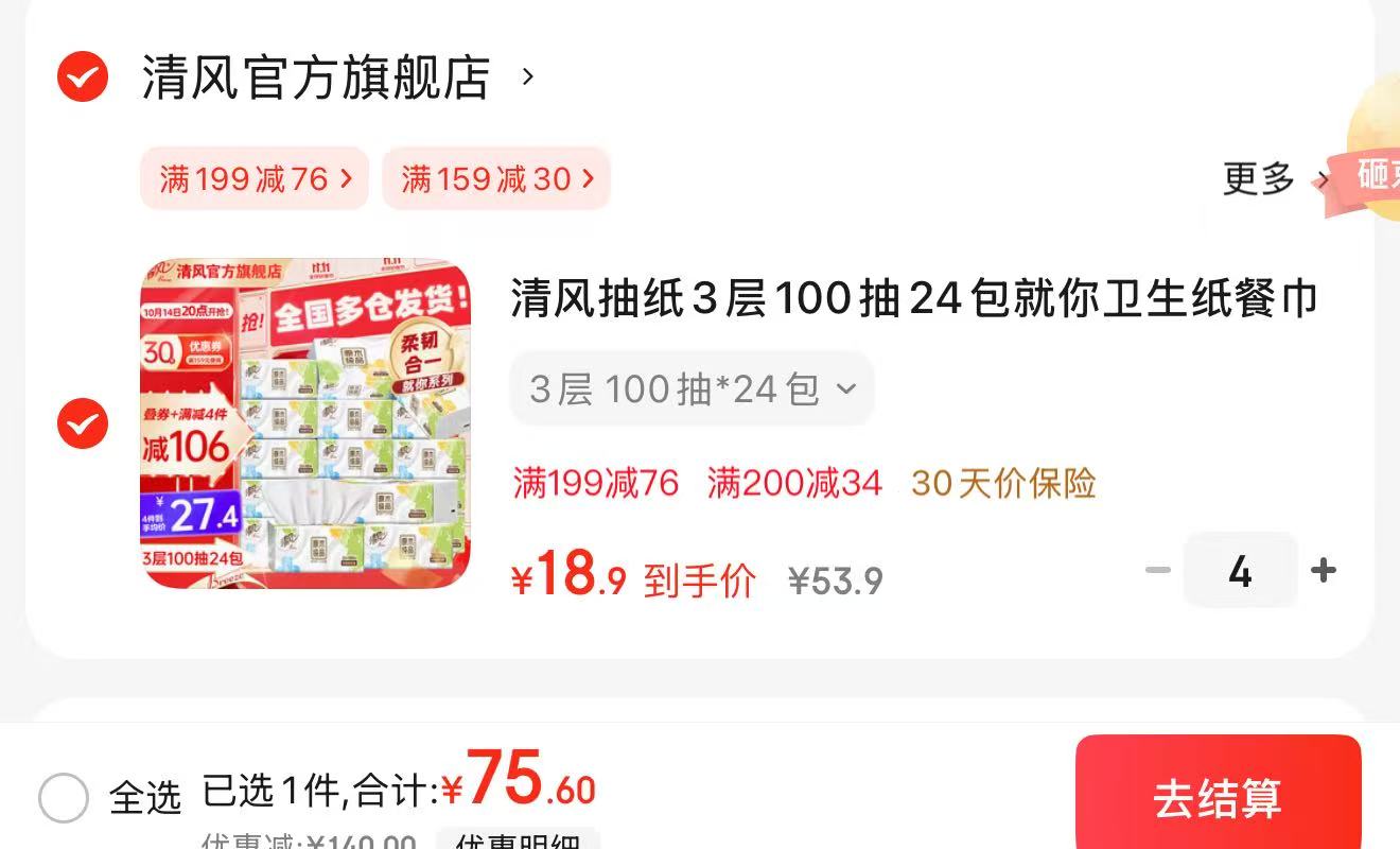 先领159-30补贴卷 清风 就你系列抽纸100抽*24包 清风 原木纯品抽纸100抽*24包 妖娆本娆 10-14 22:30 4次浏览 先领159-30补贴卷https://u.jd.com/BgMCE5Y清风 就你系列抽纸100抽*24包https://u.jd.com/BrCNvvy 清风 原木纯品抽纸100抽*24包https://u.jd.com/BDCk3FG 任选1款拍4件75.6元,才折0.7/包原文地址:https://news.ixbk.fun/category-haodan/ 微博线报 0.8元一箱华美月饼 领 拍 华美月饼礼盒双黄纯白莲蓉中秋送礼金尊纳福1100g hxt 找不到别的平台好活动