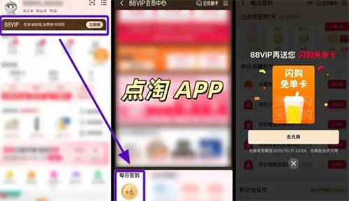 88vip去点淘app 签到试试 部分人会弹奶茶免单卡